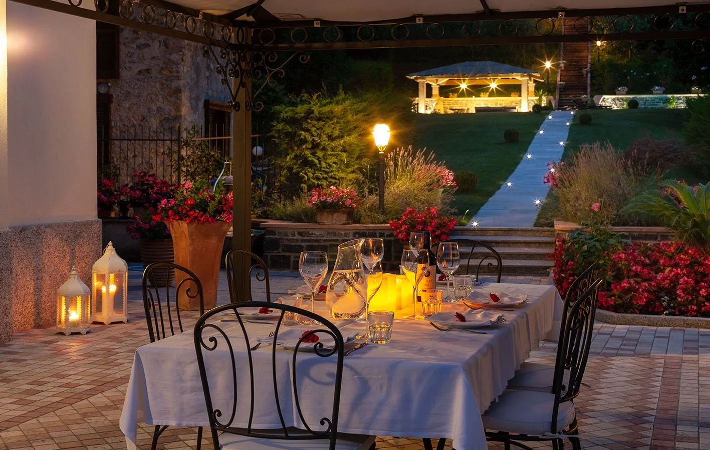 Adjacent to the villa, guests can enjoy a panoramic outdoor gazebo with stunning lake views, perfect for al fresco dining.